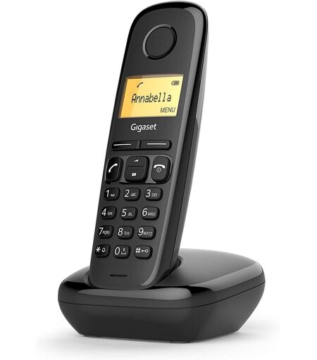 Gigaset CHECARZHN--NO1-A170 Single - Téléphone Fixe Sans Fil De Base Avec Grand Écran Et Technologie Eco Dect À Économie D'Énergie - Noir