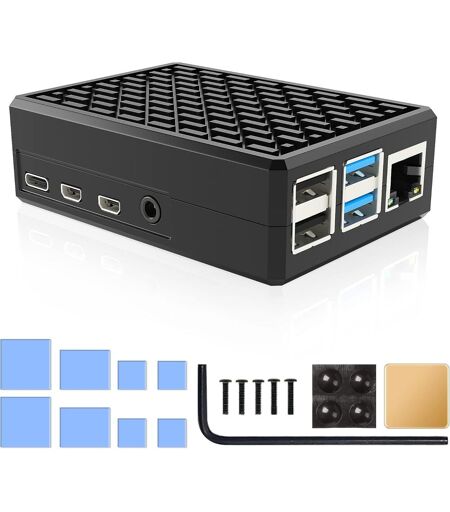 Système de refroidissement passif Le boîtier en métal touche directement la puce pour dissiper la chaleur à travers l'autocollant thermoconducteur. L'ensemble du boîtier agit comme un dissipateur thermique, pas besoin de ventilateur, fonctionne bien et maintient votre pour Pi au fraisAccès facile à tous les ports Le montage est très simple, tandis que tous les ports restent facilement accessibles. Pour les connexions GPIO, HDMI, Micro USB, SD, bloc d'alimentation, il y a des découpes dans le boîtierMatériau métallique de qualité supérieure le boîtier Compatible avec Raspberry Pi 4B est en aluminium lisse. Un boîtier en métal solide protège votre pour RPi4 contre les rayures, la poussière et les dommagesRemarque Avant l'utilisation, retirez délicatement et lentement les films (blanc et transparent) des coussinets de dissipation thermique. Veuillez util r les ongles avec précaution. Nous avons également inclus un autre jeu de patins et de pieds en caoutchouc de rechangeContenu de la livraison 1 boîtier pour Raspberry Pi 4B, 2 jeux de 4 pads thermo-conducteurs, 2 jeux de 4 pieds en caoutchouc et une clé Allen sont inclus ...