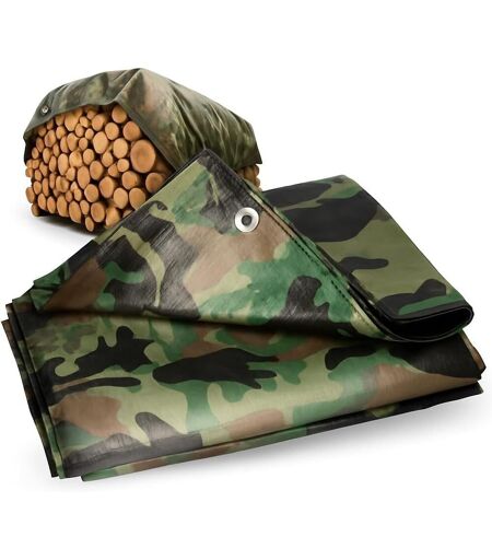 Multifonctionnelle Cette bâche est destinée aux s, aux scouts, aux survivalistes et aux jeux de terrain tels que le paintball ou l'ASG. Elle s'avérera également utile comme isolation sous tente en camping ou comme remplacement de filet de camouflage. Une protection fiable Étant bicouche et fabriqué en polyéthylène haute densité, il offre une couverture étanche pour tout ce que vous devez protéger ou dissimuler à la vue. Elle peut être utilisée pour sécur r votre voiture, vos meubles de jardin, votre bois de chauffage, ou même des matériaux de construction sur le chantier. Résistante et pratique Cette bâche est résistante à la grêle, au gel, aux moisissures, aux rayons UV et à d'autres conditions météorologiques défavorables. Elle est également facile à util r et à laver. Les bords sont renforcés pour une protection encore meilleure. Imperméable Grâce à une fabrication soignée et à un tissu extrêmement étanche, ce produit est sûr de protéger efficacement vos biens de l'humidité extérieure et de la pluie. Spécifications Taille 3x5m. Grammage 90g/m2. Couleur camouflage. Des anneaux métalliques sont placés sur son pourtour tous les 100 cm environ et peuvent être fixés à l'aide de caoutchouc ou de corde. ...