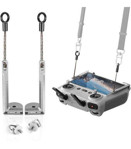 Wide Compatibility STARTRC Balance Lanyard Metal Fixtures est conçu pour les télécommandes RC 2/RC/RC Pro, compatible avec le drone Mini 4 Pro/Air 3S/Mini 3/Mini 3 Pro/Mavic 3 lorsqu'il est associé à une sangle disponible dans le commerce, ce qui en fait un choix essentiel pour les amateurs de drones et les pilotes professionnels, libérant ainsi vos mains.(la manette et la lanière ne sont pas incluses). Remote Screen Always Up Balance Strap Metal Hardware garantit que l'écran de votre télécommande reste orienté à la verticale tout au long de l'utilisation, libérant ainsi vos mains et gardant votre ligne de mire dégagée pour améliorer l'efficacité du vol ou de la conduite. Ergonomic Comfort, Secure Grip Le mariage du matériel métallique et de la sangle est méticuleusement conçu selon des principes ergonomiques, épousant les contours naturels de votre main pour minim r la fatigue lors d'une utilisation prolongée. Elle protège l'écran de votre télécommande et n'entrave pas son fonctionnement, ce qui vous permet de profiter des joies du vol en toute sérénité. Deux options d'accrochage Le matériel métallique offre à la fois des modes d'accrochage vertical en forme de L à 90° et de montage par trou de vis pour la sangle. S'adaptant à différents scénarios, passez d'une configuration à l'autre en toute simplicité. L'installation par vis est simple et sûre, ne nécessitant aucun démontage pour le stockage. Enhanced Operational Stability Electroplated aluminum construction provides a solid foundation and balanced weight distribution for your remote controller, significantly reducing hand-induced vibrations due to fatigue, ensuring pinpoint control even during intense maneuvers. Le matériel métallique durable garantit une fiabilité à long terme pour votre dragonne. Ce que vous recevrez 2 x Fixations en métal¿2 x Vis solides en alliage d'aluminium CNC (la manette et la lanière ne sont pas incluses). Toute question ou problème de qualité sera répondu ou résolu dans les 24 heures. ...