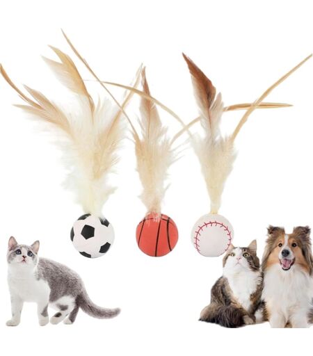 Letnerny-Lot De 3 Balles Rebondissantes Pour Chat Avec Plumes, Balles Rebondissantes Pour Chats D'intérieur, Balle Rebondissante Interactive Pour Chien C-At Fea-Ther, Jouet C-At Entertainment Ba-Ll T