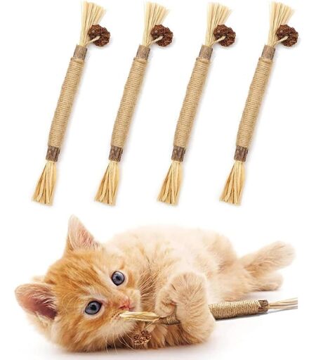 Letnerny-Lot De 4 Bâtons À Mâcher Naturels Pour Nettoyer Les Dents De Chat - Jouets Pour Nettoyage Des Dents De Chaton - Soulage Le Stress - Augmente L'appétit (22 Cm)