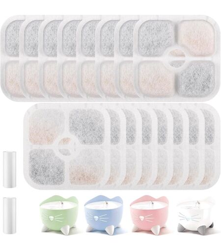 Chenquansarl-Lot De 16 Filtres Pour Fontaine Catit Pixi Avec 2 Tuyaux, Triple Système De Filtration, Filtre De Remplacement Avec Résine Et Charbon Actif