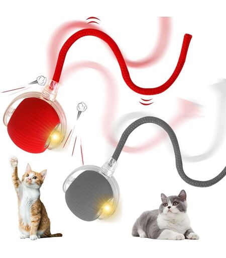 Letnerny-Lot De 2 Balles Interactives Pour Chat Avec Queue, Balle À Rouler Virale Chewie Rechargeable, Roulement Actif Pour Chats, Automatique Intelligent À 360°, Rouge + Gris