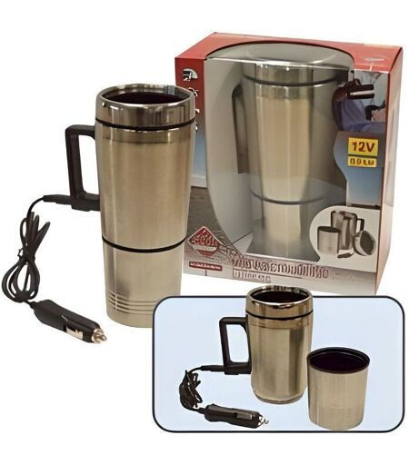 Mug électrique 0,5 litre argenté pour camping-car ou véhicules équipés en 12V. Permets de conserver votre boisson au chaud tout au long de votre trajet sur la route. Branchement sur prise allume-cigare. Base antidérapante. Livré avec fusible 4A et cordon allume-cigare de 120 cm de long. ...
