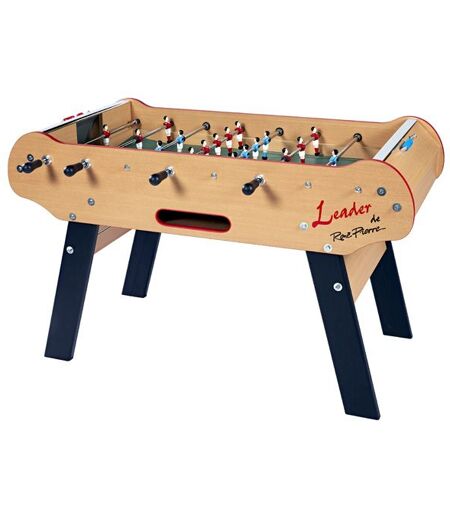 Vous êtes nostalgiques de vos bons moments à jouer au baby dans les cafés ? Retrouvez ce Baby foot LEADER avec son design typique du babyfoot à la française. Le babyfoot Leader de René Pierre est composé d’une caisse en panneau mélaminé de couleur hêtre, de pieds renforcés de couleur noir, ainsi que d’une main courante rouge. Cette structure lui confère une grande stabilité avec poids de 72 kg parfaitement réparti. Le terrain de jeu est en linoléum vert pour un rendu plus réel et assurer puissance et précision de tir. Il est équipé de barres télescopiques haute résistance en acier chromé, surmontées de poignées professionnelles en ABS et de joueurs en métal décorés à la main, avec maillots rouges ou bleus et short de couleur blanche. Les cages sont équipées du traditionnel effet sonore de « gamelles » lors de tirs puissants et bien placés. Les compteurs de points sont également à l’honneur de la France, c’est-à-dire bleu et rouge. - Nouveau système de barres coulissantes avec bagues. - Paliers de glisse en métal avec amortisseurs en acier trempé. - Retour central des balles. - 2 balles en liège fournies Fabriqué en France. ...