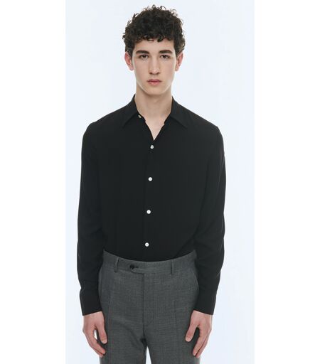 Confectionnée en viscose fluide, cette chemise noire à col hirondelle offre un tombé léger et naturel. Sa coupe ajustée et ses poignets arrondis soulignent une silhouette élégante et contemporaine. Col hirondelle, Coupe ajustée et bas liquette, Poignets arrondis, Chemise homme 100% viscose, Lavage machine 30°C, ne pas sécher en machine. ...
