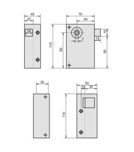 Coffre acier cambré de 70 x 110 mm. Fouillot laiton de 7 mm. Axe à 45 mm. ...