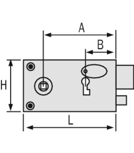 Coffre acier embouti de 140 x 80 mm. Canon de 42 mm. Fouillot carré de 6 mm. Axe à la clé : 59 mm. Axe au fouillot : 117 mm. ...