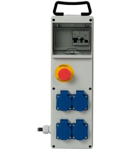 Le Coffret chantier 250V NF-CEBA-CM4A est un équipement essentiel pour tout professionnel des travaux publics. Conçu pour offrir une protection optimale, ce coffret intègre des fonctionnalités avancées assurant la sécurité et la fiabilité des installations électriques sur les chantiers, tout en favorisant la praticité grâce à sa conception ergonomique.Ce coffret de chantier est équipé d'un inter différentiel de 16A - 30mA pour une sécurité renforcée contre les risques d'électrocution. Doté de quatre socles à clapet 2P+T de 16A - 250V, il permet de brancher plusieurs appareils simultanément, optimisant ainsi l'efficacité des opérations. Le dispositif d'arrêt d'urgence offre une sécurité supplémentaire en permettant une coupure rapide de l'alimentation en cas de besoin. Avec son câble H07RNF de 2 mètres, il garantit une flexibilité d'utilisation tout en répondant aux normes IP44, protégeant ainsi les connexions de l'humidité et des poussières. Sa poignée de transport intégrée facilite ...