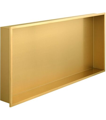Niche à poser Idéal pour créer un espace de stockage, particulièrement dans une douche Etanchéité à réaliser avec un silicone adapté Fabrique en acier inoxydable Finition gold brossé Dimensions 60 mm x 30 mm x 7 mm ...