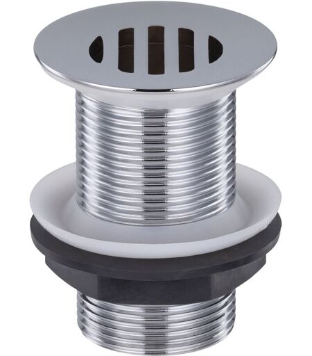 Bonde de vidage pour lavabo à écoulement libre. Raccordement au siphon par filetage 1'1/4 (33x42). Bonde en laiton finition chromé. Idéale pour les lavabos ou vasques sans trop-plein, où l’écoulement permanent est obligatoire pour limiter tout risque de débordement. Avantages : - Évite les débordements accidentels - Facile d’entretien, pas de mécanisme à entretenir ou à remplacer - Montage simple et rapide par simple vissage d'un contre-écrou - En laiton chromé pour une bonne résistance à la corrosion Composition : - 1 bonde à écroulement libre - 1 joint d'étanchéité à placer dans le lababo - 1 joint d'étanchéité à placer sous le lababo - 1 contre-écrou Caractéristiques techniques : - diamètre dessus de la bonde : 62 mm - hauteur totale : 78 mm - épaisseur plan : de 20 à 50 mm - filetage mâle 1'1/4 ...