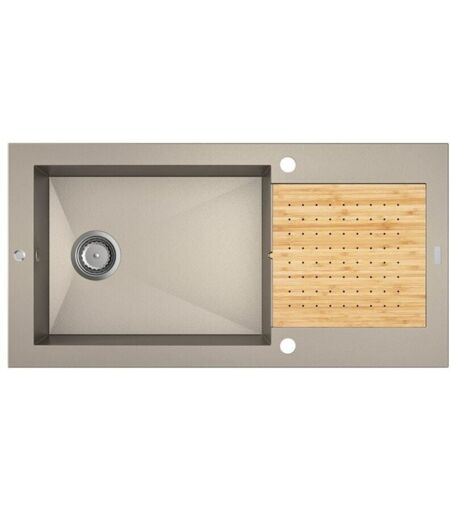 Évier séchant à encastrer ÉOLE 1 grand bac Fourni avec 1 planche amovible recto-verso égouttoir – planche à découper Dimensions de la cuve : 53 x 40.4 cm Lisse et soyeux au toucher – entretien facile Épaisseur du plan de travail 28 à 38 mm Tous nos éviers sont livrés avec : La notice de pose Le système de vidage gain de place Les conseils d'utilisation et d'entretien L'emballage sécurisé de l'évier, adapté au transport de ce type de produits, vous garantit une livraison sans dommage. Cet évier est fabriqué en France et est garanti 7 ans. Particularités : Cet évier est fabriqué à partir d'un matériau minéral composite, le Carealith®, un matériau léger et résistant qui comporte de nombreux avantages : Minéral à 85 % (quartz, granit, ...). Nous utilisons en complément un liant chimiquement inerte, qui rend la surface robuste et les couleurs profondes. Efficace pour l'hygiène. Le Minéral Composite CAREA® est un matériau inerte à la surface régulière et homogène ; il ne retient ni l'eau ni ...