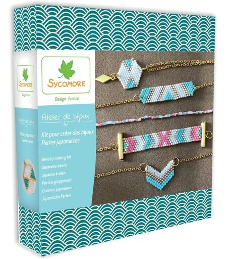 Dans cette jolie bo?te d?couvre la technique des perles japonaises et r?alise des magnifiques bracelets et pendentifs. Cette bo?te contient: perles japonaises dans une bo?te en plastique ( 5 couleurs), anneaux ( x20pcs), fil nylon en bobine ( 6m) couleur dor?e, fermoirs x 5 ( gold), fermoirs sp?cifique pour perles japonaises x 2, cha?ne, charm g?om?trique, pompom rose, aiguille tr?s fine pour perles japonaises, outil pour bijoux ( coupe et pince) et 1 notice avec diff?rents mod?les. ...