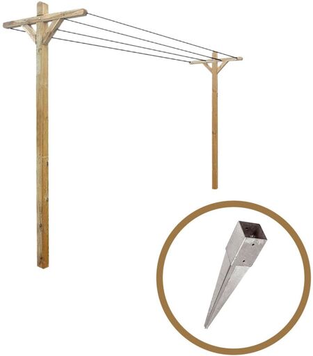 CÉMONJARDIN Kit étendoir à linge extérieur bois Séville + 2 supports à enfoncer