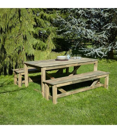 Description générale Le salon de jardin avec banc en bois Normand est idéal pour profiter des repas en extérieur, créant une ambiance conviviale pour les moments en famille ou entre amis. Spécifications techniques Dimensions de la table : L 180 x lg 90 x ht 75 cm Dimensions du banc : L 180 x lg 38 x ht 45 cm Épaisseur d'une latte : 2 cm Épaisseur des pieds : 6,8 x 6,8 cm Matériau : pin sylvestre certifié FSC, traité autoclave classe III Compatibilité et accessoires Produit livré en kit, à monter soi-même. Installation Le montage est nécessaire lors de la réception du produit. Suivez les instructions fournies pour une installation simple et rapide. Utilisation Convient pour une utilisation en extérieur, idéal pour les repas, les pique-niques et les moments de détente sur la terrasse ou dans le jardin. Autres informations Pour garantir la longévité du bois, il est recommandé d'appliquer un saturateur ou une lasure extérieure spéciale bois dès la première année et de renouveler ...