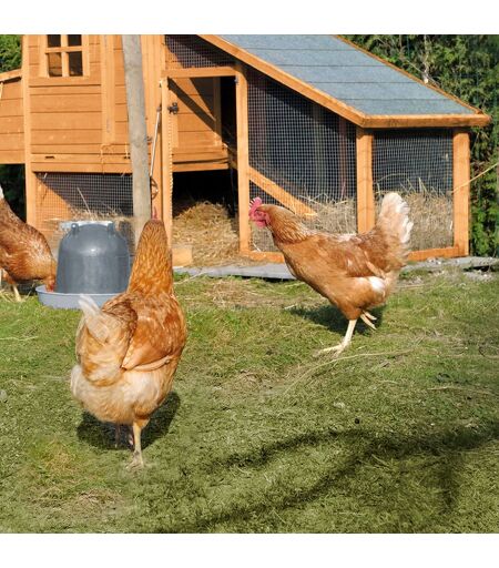 Description générale Le poulailler en bois Minnesota est idéal pour accueillir jusqu'à 3 poules, vous permettant de profiter d'œufs frais. Conçu pour les protéger des intempéries et des prédateurs, ce poulailler est équipé d'un abri, d'une rampe d'accès, d'un pondoir à deux compartiments et de deux perchoirs. Son toit ouvrable facilite la collecte des œufs. Spécifications techniques Matière : Sapin lasuré, traité par séchage au four pour une meilleure résistance à l'humidité et aux moisissures Matière du toit : Feutre bitumé, résistant à la pluie et à l'humidité Matière du grillage : Acier galvanisé Dimensions hors tout : L 189 x lg 77,5 x H 114 cm Dimensions au sol : L 148,5 x lg 60,5 cm Dimensions de la porte de la zone d'activité : H 65,5 x lg 31 cm Dimensions de la porte de la zone de repos : H 41 x lg 26 cm Dimensions de la fenêtre : H 26 x lg 24 cm Dimensions du pondoir : L 58,5 x P 29 x H 37/31 cm Capacité : Jusqu'à 3 poules Compatibilité et accessoires Ce poulailler est ...