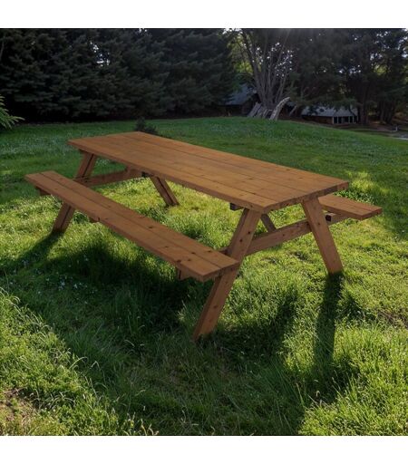 CÉMONJARDIN Table de pique-nique en bois 8 personnes