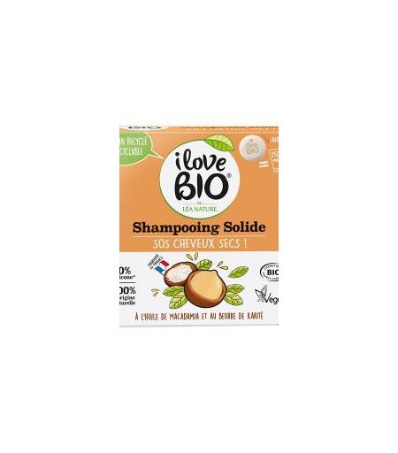 I Love Bio Shampoing Solide Beurre de Karité et Huile de Macadamia Bio 65 G est enrichi en huile de Macadamia et beurre de Karité, est une solution naturelle et écologique pour nourrir intensément les cheveux secs et ...