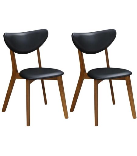 Vente-unique - Lot de 2 chaises en simili et bois d'hévéa naturel foncé - Noir - lisette