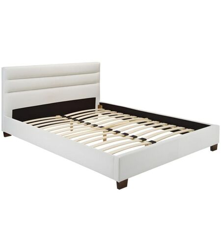 Vente-unique - Lit 140 x 190 cm - Simili - Blanc - faustin