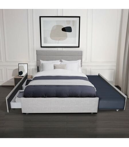 Le Quai Des Affaires - Lit palermo 140x200 +1 sommier+2 tiroirs+1 tiroir lit 90x190 / Gris clair/ 203x142x105,5 cm