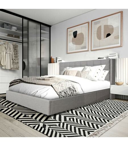 Le Quai Des Affaires - Lit coffre wembley 140x190 + 1 sommier / Gris clair/ 208x148x111 cm