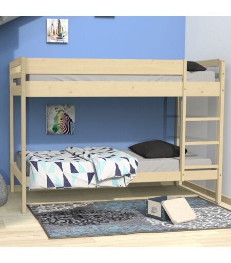 LE QUAI DES AFFAIRES Lit superposé BRICE 90x190 + 2 sommiers / Naturel/ 196x100x140 cm