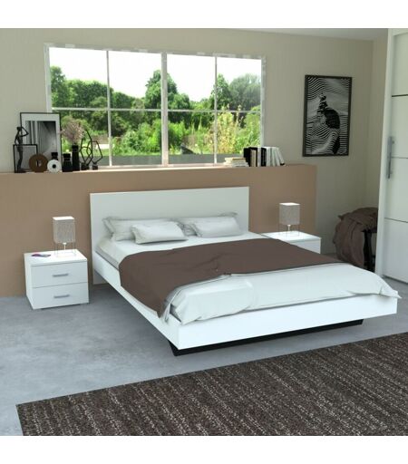 Le Quai Des Affaires - Lit loft 160x200 + 2 chevets + sommier + tête de lit / Blanc/ 202x164x75 cm