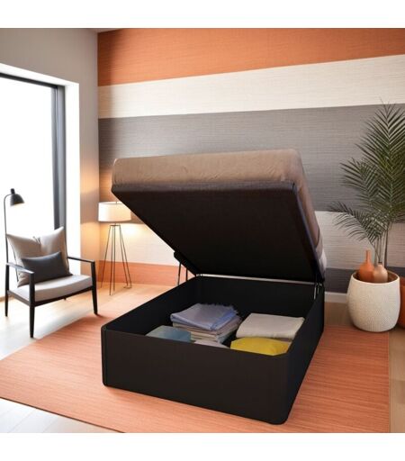 Le Quai Des Affaires - Lit coffre spiro 90x200 + 1 sommier / Noir/ 201x91x38