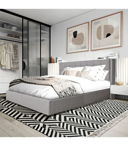 LE QUAI DES AFFAIRES Lit coffre WEMBLEY 160x200 + 1 sommier / Gris clair/ 218x176x111 cm