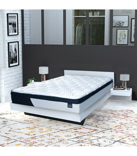 Lit COOL 140x190 cm + 2 chevets + 1 matelas CASSIE :Le lit COOL allie modernité et praticité avec ses deux chevets suspendus intégrés à la structure de lit. Astucieux, les chevets suspendus ne prennent pas de place au sol et possède chacun un tiroir. Son design bicolore apporte des notes industrielles et une ambiance loft à votre chambre à coucher.Allié au matelas Cassie d'une épaisseur de 30 cm, offrez-vous une literie complète au confort optimal!Matelas CASSIE. Le matelas CASSIE vous procure fermeté et soutien grâce à la technologie de sa mousse mémoire de forme à haute densité qui englobe votre corps et vous permet de relâcher les tensions. De plus, les ressorts ensachés présents dans le matelas assurent une indépendance de couchage et le maintien de votre colonne vertébrale tout au long de la nuit. Les PLUS produits : - Literie complète avec chevets, sommier et matelas- Matelas de 30 cm d'épaisseur- Tiroirs de rangementCaractéristiques matelas CASSIE: · Densité mémoire de forme 3 ...