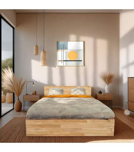 Le Quai Des Affaires - Lit coffre 160x200cm milo avec tête de lit + sommier/ Chêne massif huilé/ 208.5 x 166.5 x 84.5 cm