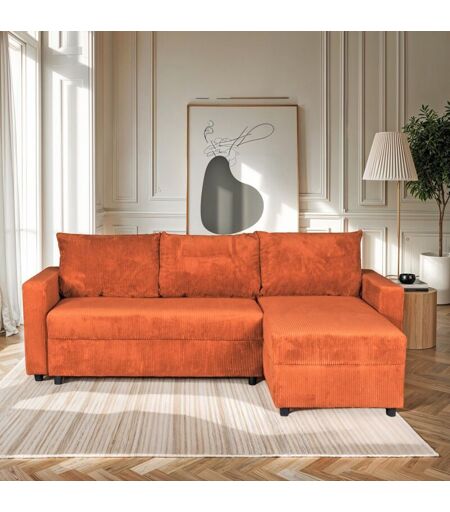 LE QUAI DES AFFAIRES Canapé d'angle convertible et réversible avec coffre THEO en velours côtelé / Terracotta/ L230xH88xP145 cm