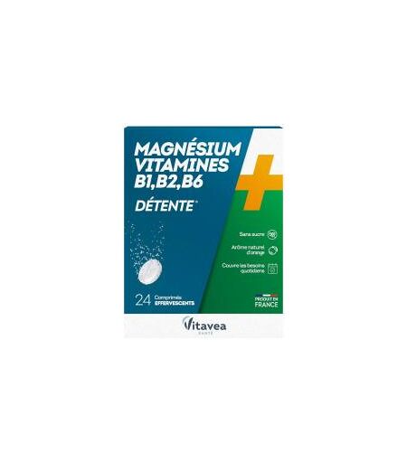 Vitavea Détente Magnésium + Vitamines B1 B2 B6 B9 B12 24 Comprimés Effervescents soutient le bon fonctionnement du système nerveux, contribue à diminuer la fatigue et favorise la relaxation. Son action est ...