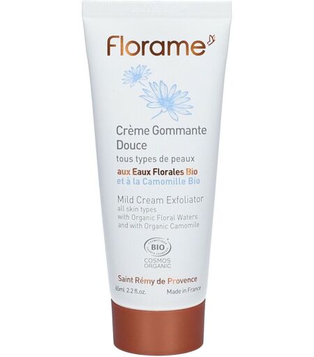 La Crème Gommante visage Bio Florame, à la texture onctueuse, élimine délicatement les cellules mortes du visage grâce à ses fins grains de Noyaux d’Abricot Bio. Enrichie en 5 huiles végétales biologiques précieuses d'amande douce, jojoba, karité, olive et sésame, en camomille, aloe vera et en eaux florales, elle adoucit, nourrit et protège les peaux les plus délicates. Florame a sélectionné un extrait de Camomille bio et les eaux florales de Bleuet et d'Hamamélis pour nettoyer délicatement le visage. Adaptées à toutes les peaux, ces formules éliminent maquillage et impuretés en douceur. Propre et apaisée, la peau retrouve fraîcheur et éclat. Produit testé sous contrôle dermatologique. Bénéfices Un tube très pratique avec un jolie capsule cuivrée Un fort pourcentage d'ingrédients biologiques (99% d'ingrédients naturels - 55% d'ingrédients biologiques) Une texture riche pour un véritable soin Une formule qui libère la peau de ses impuretés Indications Adaptée à toutes les peaux Conseil d'utilisation Une à deux fois par semaine, appliquez du bout des doigts sur le visage, en évitant le contour des yeux, et massez par petits mouvements circulaires en insistant sur la zone médiane. Rincez avec de l’eau tiède. Evitez le contact avec les yeux ; en cas de contact, rincez abondamment à l’eau claire. Principaux actifs Une sélection spécifique d'ingrédients naturels et biologiques : Beurre de Karité Bio : naturellement riche en vitamines A, D et E, ce beurre est reconnu our ses propriétés réparatrices, adoucissantes et protectrices Gel d'Aloé Véra Bio : riche en vitamines , le gel d'Aloé Véra Bio possède des propriétés hydratntes et apaisantes Huile d'Amande douce Bio : riche en vitamines A et E, elle nourrit, adoucit et apaise la peau Huile de Jojoba Bio : connue pour ses propriétés rééquilibrantes, elle laisse la peau douce et veloutée Huile d'Olive Bio : riche en vitamines A, D, E et K, elle est connue pour ses propriétés adoucissantes. Excellente pour les peaux sèches et fragilisées Huile de Sésame Bio : elle est connue pour ses propriétés nourrissantes et anti-radicalaires et participe à la lutte contre les agressions extérieures Poudre de Noyaux d'Abricot Bio : élimine les impuretés et les cellules mortes en douceur Composition Aqua (Water), Sesamum Indicum (Sesame) Seed Oil*, Butyrospermum Parkii (Shea) Butter*, Cetyl Alcohol, Cetearyl Alcohol, Prunus Armeniaca (Apricot) Seed Powder*, Glycerin, Cera Alba (Beeswax), Centaurea Cyanus Flower Water*, Hamamelis Virginiana (Witch Hazel) Leaf Water*, Prunus Amygdalus Dulcis (Sweet Almond) Oil*, Cetearyl Glucoside, Sorbitol, Simmondsia Chinensis (Jojoba) Seed Oil*, Xanthan Gum, Lauryl Glucoside, Polyglyceryl-2 Dipolyhydroxystearate, Aloe Barbadensis Leaf Juice Powder*, Citrus Aurantium Dulcis (Orange) Peel Oil*, Citrus Medica Limonum (Lemon) Peel Oil*, Citrus Aurantium Bergamia (Bergamot) Fruit Oil*, Olea Europaea (Olive) Fruit Oil*, Chamomilla Recutita (Matricaria) Flower Extract*, Citrus Aurantium Amara... ...