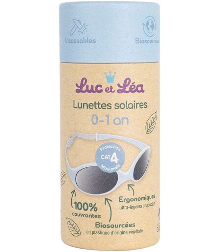 Les lunettes de soleil Luc & Léa en bleu dragé, spécialement conçues pour les bébés de 0 à 1 an, offrent une protection optimale contre les rayons solaires extrêmes. Fabriquées en plastique d'origine végétale à base d’huile de ricin, ces montures biosourcées sont respectueuses de l’environnement. Les verres en polycarbonate de catégorie 4 garantissent la plus haute protection UV, idéale pour les sorties en montagne, à la plage ou en poussette.La monture est incassable et ultra-légère (8 grammes), avec des charnières sans vis pour plus de sécurité et de confort. La forme des montures est adaptée à la morphologie du visage de bébé, assurant un bon maintien sans glisser. Les branches latérales épaisses enveloppent les yeux de bébé pour une protection optimale, de face et sur les côtés. Dotées d'un bandeau élastique ajustable et détachable, elles s'adaptent parfaitement pour un usage sécurisé et confortable.Ces lunettes de soleil sont fournies avec un étui en carton recyclable et une pochette en microfibre, garantissant une protection optimale lors du rangement.BénéficesAdaptées pour les bébés de 0 à 1 anVerres de catégorie 4 pour une protection solaire maximaleFabriquées en plastique d'origine végétale (huile de ricin), biosourcées et respectueuses de l’environnementUltra-légères (8 grammes) pour le confort de bébéCharnières sans vis, branches latérales épaisses pour une sécurité accrueBandeau élastique ajustable et détachable pour un maintien optimalFournies avec un étui recyclable et une pochette en microfibreApplicationPour une protection maximale, installez bébé à l’ombre et équipez-le d’une casquette. Nettoyez les lunettes après chaque utilisation avec de l’eau tiède et un savon neutre, puis séchez-les avec un chiffon doux. Rangez-les dans l’étui protecteur fourni pour les conserver en parfait état. ...