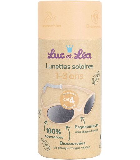 Les lunettes de soleil Luc & Léa, spécialement conçues pour les bébés de 1 à 3 ans, protègent les yeux fragiles des tout-petits des rayons solaires intenses. Avec des verres de catégorie 4, elles offrent la protection la plus élevée contre les rayonnements solaires extrêmes. La monture et les verres sont incassables, ultra-souples et sans vis pour un confort et une sécurité accrus. La forme enveloppante et les parties latérales couvrantes assurent un maintien optimal et une couverture complète des yeux, tandis que le système « easy clip » permet de fixer et détacher facilement le bandeau élastique. Ces lunettes incluent un étui recyclable et une pochette en microfibre pour une protection sans rayures.BénéficesConçues pour les bébés de 1 à 3 ansProtection catégorie 4 contre les rayons solaires intensesMonture incassable, ultra-souple et sans visForme enveloppante, ne glisse pas, avec des parties latérales couvrantesSystème « easy clip » pour bandeau élastique détachableÉtui recyclable et pochette en microfibre inclusApplicationInstaller bébé à l’ombre d’un parasol, lui mettre une casquette et lui apprendre à porter ses lunettes. Ranger les lunettes dans leur étui protecteur, les nettoyer avec de l’eau tiède et du savon neutre, et les sécher avec un chiffon doux. ...