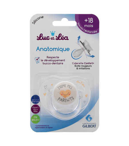 Parapharmacie > Bébé & Maman > Accessoires bébé > Sucettes et attache-sucettes > Sucette physiologique Luc et Léa Sucette Anatomique J'aime Mes Parents +18 mois - Sucette physiologique - Pharmacie en ligne LaSante.net