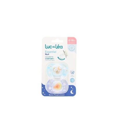 Luc et Léa Essentiel Nuit 2 Sucettes Anatomiques 6-18 Mois - Blister 2 sucettes