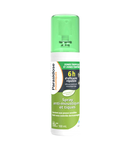 Parapharmacie > Hygiène & Premiers soins > Anti-insectes Parasidose Moustiques Zone Tropicale et Zone Tempérée Spray Anti-Moustiques et Tiques 100 ml - Anti-insectes - Pharmacie en ligne LaSante.net