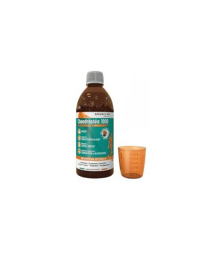 Granions Chondrostéo+1000 en 500 ml est un complément alimentaire qui contient une synergie de 7 actifs rigoureusement sélectionnés et formulés pour une absorption optimale afin d'agir au cœur des articulations :des constituants naturellement ...