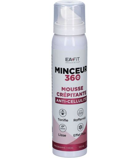 La mousse crépîtante et légère de la gamme Minceur 360 est spécialement conçue pour aider à tonifier, raffermir et lisser la peau. Grâce à une combinaison d'actifs reconnus, elle agit efficacement pour réduire l’aspect de la cellulite, améliorer la microcirculation sanguine et stimuler le drainage.Sa texture innovante et sensorielle crée une sensation de fraîcheur intense, offrant un effet tonifiant immédiat et laissant la peau douce, ferme et hydratée, sans effet collant.Les bienfaits de la MOUSSE CRÉPITANTERéduction de la cellulite et de l’aspect peau d’orange : La caféine stimule la lipolyse pour aider à déloger les cellules graisseuses responsables de la cellulite.Tonifie et raffermit la peau : L’extrait d’hamamélis favorise la microcirculation et l’élasticité de la peau.Drainage et réduction de la rétention d’eau : L’extrait de cerise contribue à un effet drainant pour affiner et alléger la silhouette.Effet cryo-tonifiant immédiat : Le menthol procure une sensation de fraîcheur intense qui réveille la circulation sanguine et raffermit la peau.À qui s’adresse la MOUSSE CRÉPITANTE ?Cette mousse est idéale pour toutes les personnes souhaitant améliorer l’apparence de leur peau, réduire l’aspect peau d’orange et raffermir les zones sensibles (cuisses, hanches, ventre, bras…).Son application rapide et non collante en fait un soin parfait pour celles et ceux cherchant un rituel minceur efficace et agréable au quotidien.IndicationUn soin innovant pour une peau plus lisse, tonifiée et raffermie.ApplicationAppliquer 1 à 2 fois par jour sur les zones concernées (ventre, hanches, cuisses, bras…).IngrédientsButane, Aqua/Water, Alcohol, Methylal, Propanediol, PPG-6 Decyltetradeceth-30, Hydrogenated Ethylhexyl Olivate, Menthol, Glycerin, Hydroxyethylcellulose, Caffeine, Sodium Lactate, Lactic Acid, Hydrogenated Olive Oil Unsaponifiables, Hamamelis Virginiana (Witch Hazel) Leaf Extract, Prunus Cerasus (Cherry) Fruit Extract, Citric Acid, Sodium Benzoate, Potassium Sorbate, Tocopherol, Denatonium Benzoate. ...