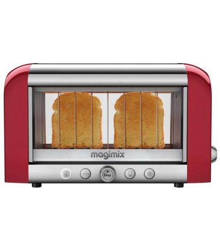 Puissance (W) : 1450 - Nombre de fentes : 1 - Matière appareil : Partie centrale en acier inoxydable et double paroi verre borosillicate - Couleur : Rouge - Fonction décongélation : Oui - Réchauffe viennoiserie : Non ...