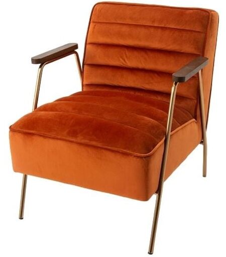 Ce superbe fauteuil Hutch va vous séduire par son confort et sa robustesse. Son piètement en métal doré, ses accoudoirs en bois et son revêtement en velours orange en font un incontournable classique au même titre que le célèbre feuilleton télé ! Collection : Hutch Matière : Tissu Couleur : Orange Longueur : 60 cm Largeur : 76 cm Hauteur : 73 cm ...