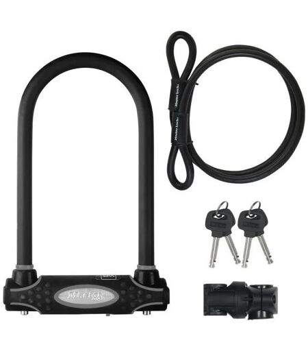 Résiste à une force de traction de 2 tonnes Câble à extrémités en boucle Protection contre la casse Conditionnement:Unitaire Dimensions A:13 mm Dimensions B:210 mm Dimensions C:110 mm Marque:MASTER LOCK Niveau de sécurité:Haute sécurité Ouverture:Clés différentes Spécificité:Anti-crochetage Type:Antivol U Utilisation:Deux roues Verrouillage:A clé ...