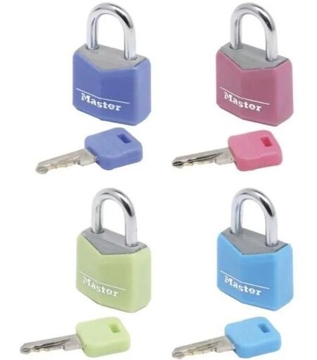 MasterLock Aluminium Coloured Vinyl Cover 20mm Padlock - Keyed Alike x 4 Idéal pour sécuriser valises, mallettes, sacs de voyage... Pratique : une même clé ouvre tous les cadenas Cadenas s'entrouvrant Tête de clé assortie Reconnaissance immédiate des clés Câble antivol recouvert d'une feuille de vinyle coloré Longueur : 65 cm Diamètre : 8 mm Avec porte-clé Type : Outils et accessoires Date de sortie : 2010-01-31 Fabricant : Master Lock ...