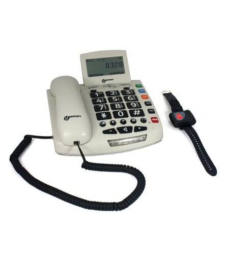 Téléphone senior avec bracelet sostéléphone amplifié, grosse touches, appel d'urgence Caractéristiques : Réglage du volume de réception jusqu'à 30dB Réglage de la tonalité de réception jusque 4 niveaux Réglage du volume d'émission (-4, 0, +4dB) 5 mémoires directes 10 mémoires prioritaires Mains libres / Ecoute amplifiée Fonction Flash / Fonction Pause Répertoire de 30 numéros Fonction > Clavier à larges touches Rappel des 10 derniers appels reçus APPELS D'URGENCE: 1 bracelet waterproof fourni - Portée : 20 à 30m 5 numéros d'urgence à programmer Bip de confirmation d'appel Annonce vocale personnalisée Possibilité de prendre un appel depuis la télécommande (fonction mains libres enclenchée) ...