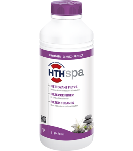 Descriptif de hth Spa nettoyant filtre : détartrage et nettoyage A force de profiter du confort délivré par le Spa, le filtre (à cartouche ou à sable) s'encrasse. L'eau est alors moins bien filtrée et le Spa devient moins agréable. Pour un nettoyage approfondi de votre spa, adoptez hth Spa Nettoyant filtre. Super efficace, le produit détruit même les dépôts calcaires et dispose d'un excellent pouvoir détergent. De coloration violette, hth Spa Nettoyant filtre est facile à l'emploi. Le produit est adapté pour tous les filtres à cartouche ou à sable, sauf filtration à charbon actif. Grâce à hth Spa Nettoyant filtre, faites fonctionner à merveille votre filtre et évitez les eaux troubles ! Très forte teneur en matières actives Dosage standard : 1 litre pour 10 litres d'eau (pour filtre à cartouche) Pour un dosage pratique, la bouteille est graduée. Utilisez les produits chimiques de traitement d'eau avec précaution. Avant toute utilisation, lisez les consignes inscrites sur l'emballage du produit et rendez-vous sur le site officiel du fabricant depuis notre page dédiée à la marque hth® ...