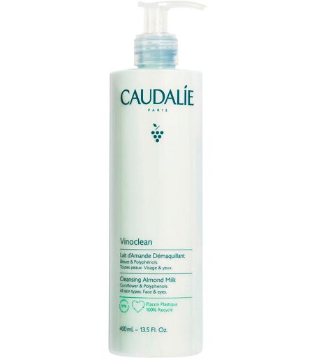 Nos produits démaquillants se font beaux. Sous le nouveau nom de VINOCLEAN et avec des formules végétaliennes et extrêmement naturelles, ils forment une nouvelle ligne de produits de nettoyage du visage respectueux de l'environnement. Formules. Le lait démaquillant aux amandes nettoie la peau et démaquille le visage et les yeux, même pour les peaux sensibles. Enrichi en huile d'amande douce nourrissante, en eau de bleuet apaisante et en polyphénols antioxydants, il protège la peau de la déshydratation. Une peau bien hydratée est visiblement nettoyée en profondeur, douce et lisse. Grâce à ses ingrédients d'origine naturelle à 97 % et à sa texture veloutée et extrêmement lisse, son application est très douce et agréable. Son parfum naturel d'amande douce procure un moment de bien-être agréable lors du démaquillage. Caudalie est engagé : - Nouvelles bouteilles en plastique 100% recyclées et recyclables*. - Économie de 50 tonnes de plastique d'origine pétrochimique**. - Réduction de l'empreinte CO2 de 45 %**. Partout où les installations nécessaires sont disponibles / Il n'y a pas de pompes recyclables : elles sont éliminées par notre partenaire, Terracycle, dans nos Caudalie Boutique Spas. **Par rapport à l'ancienne ligne de produits de nettoyage de la peau et de démaquillage de Caudalie. Avantages Nettoie et démaquille en une seule étapeNourrit et répareLaisse la peau douce, confortable et apaisée. ...